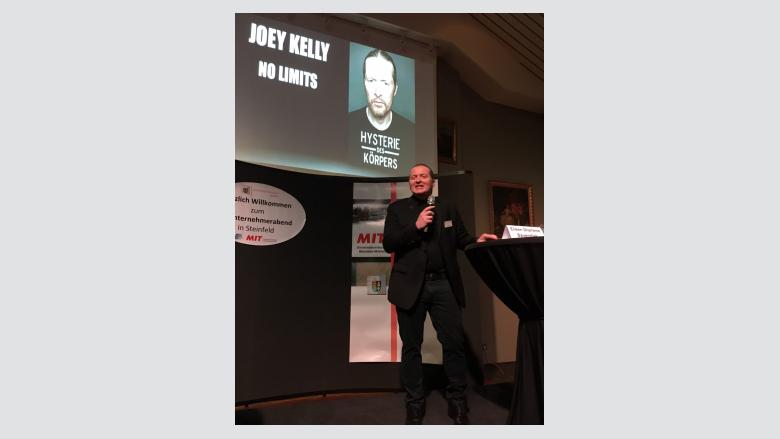 Zugpferd der Veranstaltung am 13. Februar 2017 im Festsaal der Schankwirtschaft Overmeyer war der bekannte Extremsportler und Unternehmer Joey Kelly. „No Limits – Wie schaffe ich mein Ziel?“ Kelly erzählte seine ganz persönliche Geschichte. Er berichtete von den Anfängen der Kelly-Family als vielköpfige vagabundierende Straßenmusiker. „Der Hut lügt nicht.“ Vater Dan Kelly hat dem kleinen Joey schon früh den Blick geschärft und selbst Demut und Bescheidenheit vorgelebt. Aber auch den unerschütterlichen Glauben, ein selbst gestecktes großes Ziel erreichen zu können. Mit dieser Einstellung hat er die Kelly-Family zu internationalem Erfolg und großer Beliebtheit geführt. Die harte Schule seines Vaters helfe ihm noch heute, sich zu motivieren und die eigenen Ziele zu erreichen, so Joey Kelly. Acht Iron-Man Wettkämpfe in einem Jahr, der 500 km lange Marsch zum Südpol oder die Wanderung ohne Proviant quer durch Deutschland von Wilhelmshaven zur Zugspitze. In der Komfortzone des Lebens hat sich Kelly die letzten Jahre nicht aufgehalten. Diese müsse man laut Kelly auch schon verlassen, wenn man Erfolg haben wolle. Denn nur wer sich immer wieder motiviere und sich neue Ziele setze, könne auch etwas gewinnen. Bei den Gästen kam der authentische Star mit seinem anschaulichen Vortrag sehr gut an. In der anschließenden Podiumsdiskussion stellten sich Springreiterin Laura Klaphake, Unternehmenspreisträgerin Eileen Sharlene Bavendiek und Joey Kelly den Fragen des Moderators Uwe Haring. Alle betonten, wie wichtig der Rückhalt der Familie für das Erreichen von Zielen ist. Zum Abschluss luden der Vorsitzende des MIT Gemeindeverbandes, Bernd große Holthaus und die Bürgermeisterin der Gemeinde Steinfeld, Manuela Honkomp, die Gäste zum Gedankenaustausch in lockerer Runde ein.