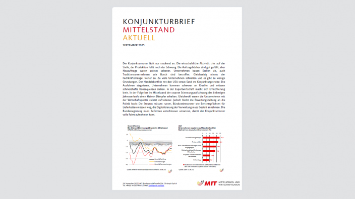 Der Konjunkturmotor läuft nur stockend an. Die wirtschaftliche Aktivität tritt auf der Stelle, der Produktion fehlt noch der Schwung. Die Auftragsbücher sind gut gefüllt, aber Neuaufträge waren zuletzt seltener. Unternehmen bauen Stellen ab, auch Traditionsunternehmen wie Bosch sind betroffen. Gleichzeitig nimmt der Fachkräftemangel weiter zu. Zu viele Unternehmen schließen und es gibt zu wenige Gründungen. Der Handelskonflikt mit den USA streut Sand ins Konjunkturgetriebe: Die Ausfuhren stagnieren, Unternehmen kommen schwerer an Kredite und müssen schmerzhafte Konsequenzen ziehen. In der...