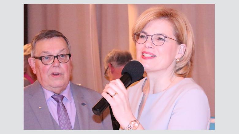 Zahlreiche Vertreter aus der Bundes-, Landes- und Kommunalpolitik waren der Einladung gefolgt. Hauptreferentin war die Bundesministerin für Ernährung und Landwirtschaft, Julia Klöckner, die auch Landesvorsitzende der CDU Rheinland-Pfalz ist. Grußworte sprachen der Bürgermeister der Stadt Garbsen, Dr. Christian Grahl, und die Landtagsabgeordnete, Editha Westmann. Dr. Christian Grahl sprach sich dafür aus, die Veränderungsszenarien zu managen und dementsprechende Beschlüsse zu fassen. Es gelte Strukturen angemessen fortzuentwickeln, ohne dabei die eigenen Werte aus den Augen zu verlieren. „Wir wollen nämlich keine wertefreien Individuen“, so Grahl wörtlich. Editha Westmann ging auf das „Märchen vom Wolf“ ein. Mittlerweile gebe mehr Verständnis für die Nutztierhalter. Westmann sprach sich für eine Verbesserung des Handwerksimages aus. Die Landesregierung halte an der Meisterprämie über das Jahr 2019 hinaus fest. „Wir lassen das Handwerk nicht im Regen stehen!“, so die Landtagsabgeordnete Westmann. Bundesministerin Julia Klöckner begrüßte die Teilnehmerinnen und Teilnehmer mit „Liebe Amts- und Würdenträger“. Es sei bedauerlich, dass sich der Ton in der Politik verändert habe. Gerade Aussagen über die sogenannten Sozialen Netzwerk förderten das Schwarz-/Weiß-Denken. Wer auf der Sachebene diskutieren wolle, fände sich schnell auf der Moralebene wieder. Das werde durch die Sozialen Medien noch verstärkt. Gerade deshalb sei es unsere Aufgabe, das Gespräch miteinander zu führen. Anderen Meinungen müsse Respekt gezollt werden. Klöckner forderte zum Zusammenhalt der Gesellschaft auf. Der Wolf müsse „reguliert“ werden, so Klöckner. Auch das sei ein Stück Artenschutz. Es komme darauf an, mehr wertkonservativ anstatt strukturkonservativ zu sein. Europa brauche einen klaren Wertekompass. Europa begegne uns täglich. Europa sei ein Friedensprojekt. Das sog. „Bauern-Bashing“ müsse ein Ende haben, so die Ministerin. Dazu gehöre auch eine höhere Wertschätzung im Umgang mit Lebensmitteln. Die Sätze „Das Brot ist nicht hart. Kein Brot ist hart.“, brachten das Thema auf den Punkt. 821 Mio. Menschen hungerten. 2,1 Mrd. Menschen seien mangelernährt. Klöckner strebe eine Reduktionsstrategie an, um so die Zahl der weggeworfenen Lebensmittel in absehbarer Zeit zu halbieren. Augenblicklich würden in Deutschland ca. 55 Kilogramm pro Einwohner und Jahr weggeworfen. Es gebe beispielsweise intelligente Verpackungen, die anzeigten, ob ein Lebensmittel noch genießbar sei. Gleich seien die Menschen im Recht und vor dem Gesetz. Die Unterschiedlichkeit der Menschen begründe aber die Kreativität einer Gesellschaft. Menschen , die gar nichts könnten, gebe es nicht. Die Demokratie erneuere sich nicht von allein. Es stehe uns gut an, wenn die Gemeinschaft für mehr Gemeinsamkeit werbe. „Wir brauchen einen fröhlichen Patriotismus“, sagte Klöckner. Das sei die Antwort auf den aufkeimenden Nationalismus. Es komme darauf an, das Leben zu genießen und für mehr Freiheit und Wohlstand zu sein, so die Ministerin. Der „Bürgerpreis Mutter Courage 2019“ ging an das Planungs- und Finanzierungsteam des Schützenvereins Stelingen e. V. 90 ehrenamtliche Helfer hätten in 3.500 Arbeitsstunden geleistet. Hier sei ein echter Bürgersinn praktiziert worden, so der MIT-Stadtverbandsvorsitzende, Klaus Peter, in seiner Laudatio. Fotos: Andreas Sobotta, Hannover (Fotos honorarfrei) Foto 1: (v.l.n.r.): Klaus Peter und Bundesministerin Julia Klöckner Foto 2: Volles Haus in Garbsen-Osterwald im Gasthof Körber. Foto 3: (v.l.n.r.): Dietmar Reddig, Klaus Peter, Editha Westmann MdL, Deodat von Eickstedt, Bundesministerin Julia Klöckner und Hartmut Büttner, Ratsvorsitzender im Rat der Stadt Garbsen. Foto 4: Strahlende Gesichter bei der Verleihung des diesjährigen „Bürgerpreises Mutter Courage“.