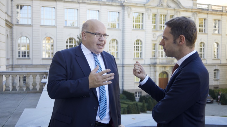 Bundeswirtschaftsminister Peter Altmaier und MIT-Hauptgeschäftsführer Thorsten Alsleben im Gespräch