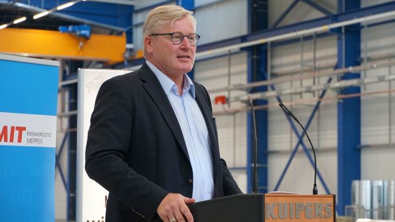 Auf Einladung der Mittelstands- und Wirtschaftsunion (MIT) Meppen machte Althusmann, der auch Vorsitzender der niedersächsischen Christdemokraten ist, auf seiner Sommertour durchs Land Station bei Kuipers Technologies im Ortsteil Hüntel. Dort versammelte sich die MIT – unter den derzeit üblichen Hygiene-Vorkehrungen – erstmals seit Ausbruch der Pandemie, um einen ersten Schritt zurück zur Normalität zu gehen, wie es Vorsitzender Reinhard Winter nannte. Schauplatz des Treffens war die neue Halle des metallverarbeitenden Betriebs, durch die die Fläche des Bereichs Schweißen von 500 Quadratmeter auf 4500 Quadratmeter gewachsen ist. Das Familienunternehmen in vierter Generation setzt damit seinen Expansionskurs fort.