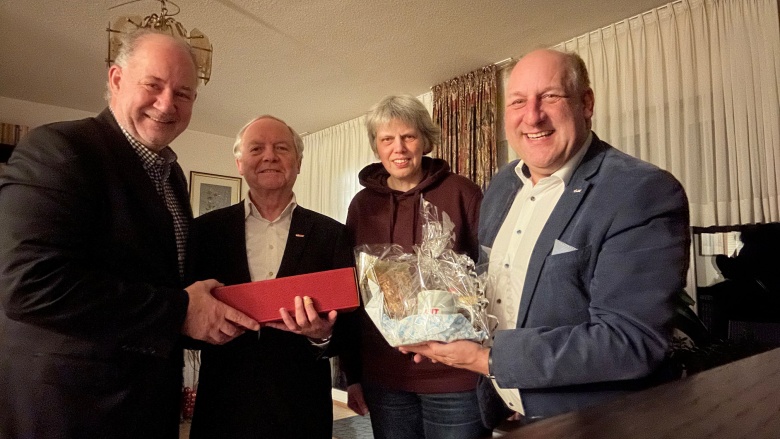 Nicht nur Bezirksvorsitzender Maik Giesen auch MIT-Kreisvorsitzenden Georg Körwer zusammen mit Annette Hegger besuchten den Jubilar