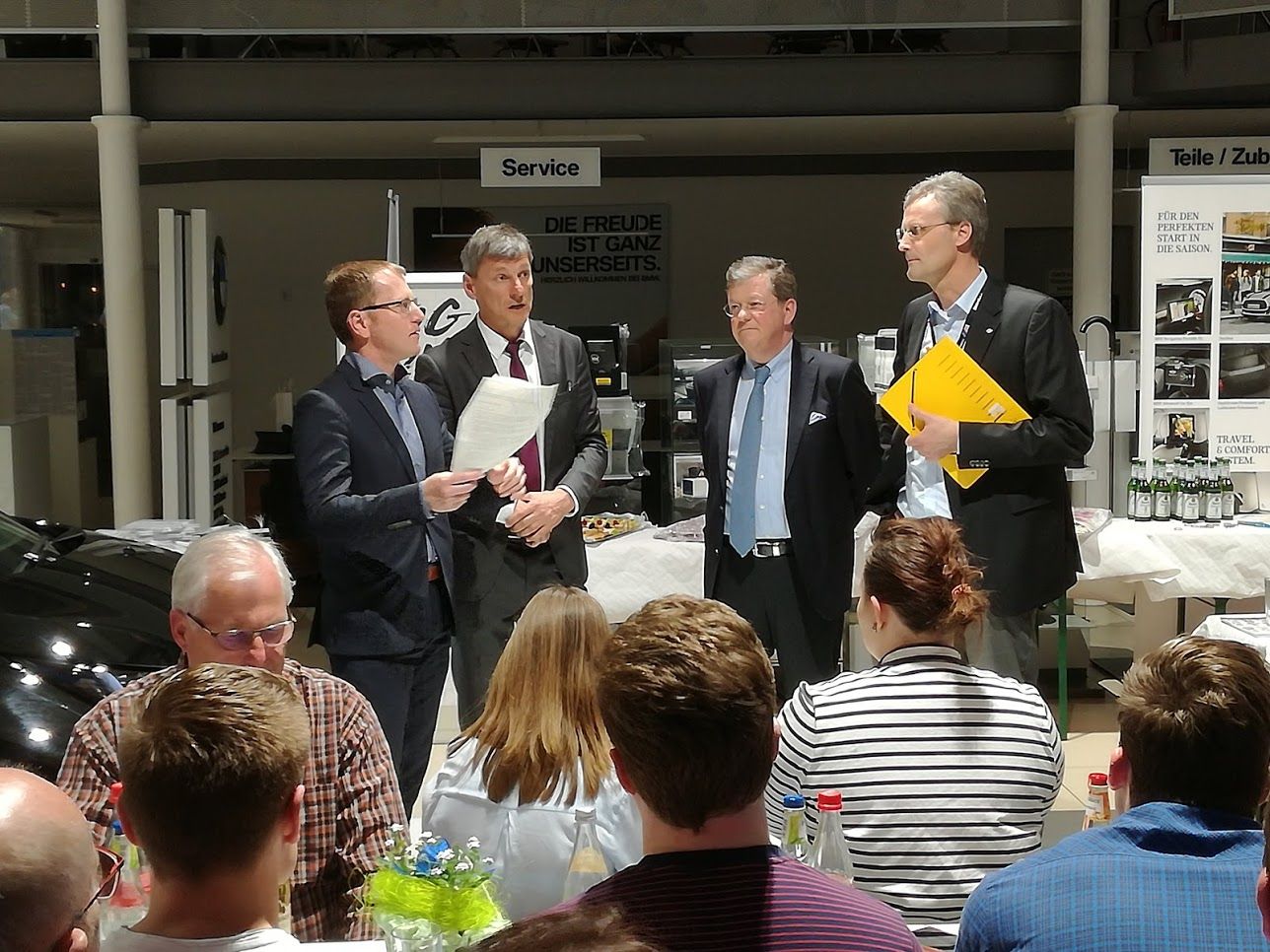 Die Mittelstandsunion im Kreis Roth und Ihr Vorsitzender Hermann Hein hatten zur Podiumsdiskussion in das Rother Autohaus Waldmüller, dass auch sein 50-jähriges Bestehen feiert, eingeladen. Dabei hielten die Experten nicht nur Impulsreferate. Sie diskutierten auch untereinander heftig und beantworteten kritische Fragen der etwa 100 Besucher. Dr.-Ing. Stephan Neugebauer, Entwicklungsingenieur bei BMW und Vorsitzender von ERTRAC, einem Fachgremium, das die EU in Sachen Straßenverkehr berät: Mobilität ist das Herzstück des gesellschaftlichen und ökonomischen Lebens in Europa. Vor allem weil die Autoindustrie hier zwölf Millionen Arbeitsplätze bietet und jährlich 50 Milliarden Euro ausgibt, um Innovationsinvestitionen zu finanzieren. Die Elektrifizierung ist zwingend, um die von der EU geplanten Kohlendioxidreduzierungen zu erreichen. Sie muss billiger werden, eine größere Reichweite bieten und eine angenehmere Ladeprozedur. Dabei aber den Verbrennungsmotor völlig abzuschneiden, ist kompletter Unfug und nicht zu schaffen. Vielmehr muss er in Zukunft mit Hilfe synthetischer Kraftstoffe CO²-neutral arbeiten. In der Kombination der Technik mit elektrogetriebenen Fahrzeugen sind die EU-Vorgaben zu erreichen. Dr. Georg Gruber, Gesellschafter der Vereinigten Werkstätten für Pflanzentechnologie in Allersberg: Die deutsche Automobilindustrie kann nicht liefern. Es ist eigentlich ein Skandal, dass sie nur Diesel und Benziner anbietet. Der nächste Skandal ist die Diesel-Krise. Wenn die Fahrzeuge die Euro-Fünf-Norm einhalten würden, dann hätten wir kein Stickoxid-Problem. Ferner stoßen Benzin-Direkteinspritzer ohne Filter 10.000 Mal mehr Partikel aus als Diesel und mehr Kohlendioxid. Dr, Stefan Schlutius, Geschäftsführender Gesellschafter der Firma ABL in Lauf, die Ladeinfrastruktur für E-Autos produziert: Ich bin heute Abend mit einem Elektromobil gekommen. Es gibt nichts schöneres. Wer einmal damit gefahren ist, wird es nicht mehr hergeben. Kleine Autos sind dabei das Richtige. Wir bieten hier Lösungen für jede Anwendung und verkaufen gegenwärtig weltweit 1200 Ladestationen pro Woche. Hier entsteht Zukunft, die für bessere Luft in den Städten sorgt und auch für 2040 werden 54% aller Autos als Hybrid oder vollelektrisch fahren!