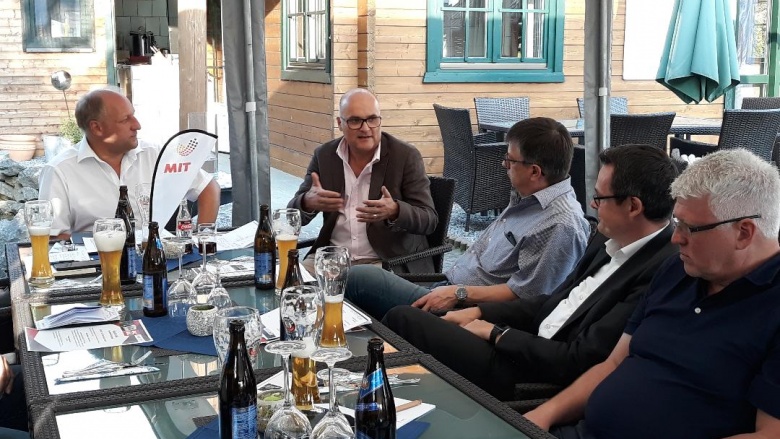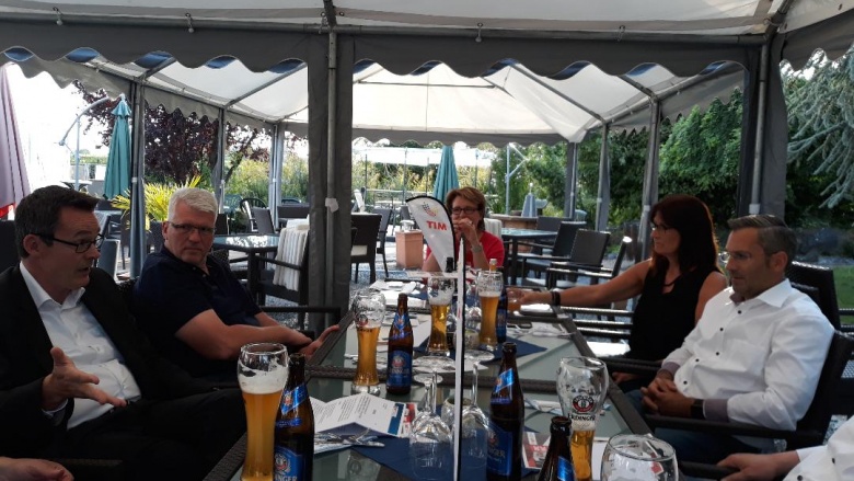 Zu einer Sommersitzung kam der MIT-Kreisvorstand des Kreises Viersen mit dem Hauptgeschäftsführer Marc Peters der Kreishandwerkerschaft Niederrhein zusammen. MIT-Kreisvorsitzender Maik Giesen gab zu Beginn der Diskussion Peters die Möglichkeit, die aktuelle Situation im Handwerk am Niederrhein aufzuzeigen. Schnell kam eine lebendige Diskussion zu den Themen Ausbildungsverträge, Bewerber, moderne Kommunikationswege zu jungen Leuten, Umzug in ein neues Kreishandwerkerzentrum in Krefeld. Die Kreishandwerkerschaft Niederrhein besteht aus der Stadt Krefeld, Kreis Viersen und dem Kreis Neuss. Erfreulich konnte Peters den MIT-Vorstandsmitgliedern berichten, dass im Sommer 2019 die Zahl der Ausbildungsverträge erneut gegenüber dem Vorjahr gestiegen sei.