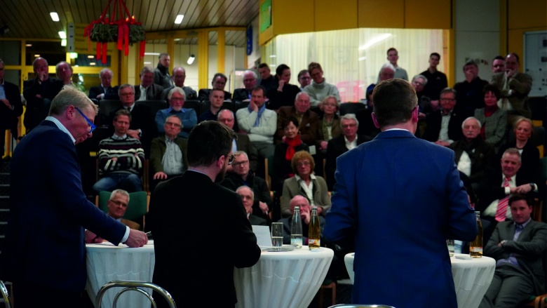 Über diese und andere Fragen diskutierten der Paderborner Bundestagsabgeordnete und stellvertretende Fraktionsvorsitzende der CDU/CSU-Fraktion Carsten Linnemann und der Fraktionsvorsitzende der SPD in Nordrhein-Westfalen, Thomas Kutschaty, auf Einladung der Mittelstandsvereinigung (MIT) der CDU im Kreisverband Paderborn im Ludwig-Erhard-Berufskolleg. „Leider ist der Trend, das Wirken großer Persönlichkeiten nur noch auf aus dem Zusammenhang gerissene Zitate zu begrenzen, auch an Ludwig Erhard nicht vorbeigegangen. Viel zu kurz kommen durch diese Vereinfachungen seine Leitlinien, die uns auch heute noch gut zu Gesicht stehen würden“, so Ulrich Lange, Vorsitzender des MIT-Kreisverbandes Paderborn in seiner Begrüßung. So seien speziell die Eigenverantwortung der Gesellschaft, das Pflichtgefühl und das soziale Bewusstsein die Eckpfeiler für Erhards Schaffen gewesen. Werte, die Lange aktuell als verloren ansieht, denn die Überregulierung und Bürokratisierung durch den Staat habe Ausmaße angenommen, die es Unternehmern, Selbständigen und Arbeitnehmern gleichermaßen schwer mache, zu wirken. „Es ist paradox, dass wir in einem Zustand, in dem es uns so gut geht wie noch nie, immer mehr von unseren Freiheiten in die Hände des Staats legen. Der baut uns einen goldenen Käfig, in dem wir bequem und zufrieden sitzen. Wir brauchen mehr von Ludwig Erhard, der auch mal den Mut besessen hat, unbequeme Dinge anzusprechen und umzusetzen“, so Ulrich Lange. Ein Ball, den Carsten Linnemann in der anschließenden Diskussion dankbar aufgriff: „Wir brauchen ein grundlegend anderes politisches System mit neuen Vorbildern. Es muss wieder um Positionen und Leitgedanken und um die klare Unterscheidbarkeit der beiden großen Volksparteien gehen. Stattdessen steht derzeit nur im Fokus, wer in Hinterzimmern die meisten Spiegelstriche in einen Koalitionsvertrag geschrieben hat. Das bekommen wir in der Öffentlichkeit nicht mehr vermittelt. Die soziale Marktwirtschaft Ludwig Erhards fußt auf der Verantwortung jedes Einzelnen. Es ist falsch, wenn wir alles in die Hand des Staates legen. Der kann es nämlich sicher nicht besser.“ Thomas Kutschaty pflichtete dem bei und wagte den Ausblick, dass die große Koalition aus CDU/CSU und SPD in Berlin wohl nicht „bis zur nächsten Wahl 2021 halten wird. Ich habe damals schon dagegen gestimmt.“ Der Fraktionsvorsitzende der NRW-SPD zeigte sich durchaus einverstanden mit den Grundsätzen der sozialen Marktwirtschaft Ludwig Erhards, wenn dabei eben der soziale Aspekt nicht vergessen wird. „Arbeit muss belohnt werden. Dafür müssen wir Anreize schaffen. Gleichzeitig dürfen wir diejenigen nicht vergessen, die am Rande der Gesellschaft stehen und derzeit keine Rolle auf dem Markt spielen. Und wir müssen uns darum kümmern, dass der Nachwuchs die für die Gesellschaft wichtigen Werte lernt und erfährt. Die Balance muss stimmen. Daher sehe ich den Ansatz von Erhard eher als Gesellschafts- und nicht nur als Wirtschaftsmodell.“ Im Bezug auf die Digitalisierung sorgt sich Linnemann speziell um die Entwicklungen im Bereich der Künstlichen Intelligenz. „Es gibt Bereiche, in denen wir stark sind. Aber das große Thema Daten als Rohstoff haben wir in der EU komplett verschlafen. Die USA und China sind deutlich weiter als wir. Es besteht die große Gefahr, dass wir hier den Anschluss verlieren. Ludwig Erhard hätte das sicher erkannt und gehandelt.“ Ein weiterer Aspekt für Linnemann ist, dass sich die Gesellschaft derzeit noch zu wenige Gedanken über die Arbeitsplätze der Zukunft macht: „Die Bedingungen ändern sich. Es wird Menschen geben, die dann nicht mehr mitkommen und somit für den Markt nicht mehr geeignet sind. Wie fangen wir sie auf? Das sind die Themen, über die sich die Politik Gedanken machen muss.“ Kutschaty warnte davor, die Digitalisierung als Allheilmittel der Zukunft zu betrachten: „Es wird diese Veränderungen geben. Ich glaube aber, dass wir die Akzeptanz für die Politik nur dann wieder erhöhen, wenn wir für die Menschen greifbar und real ansprechbar bleiben.“ Einig waren sich beide Politiker auch darin, dass die Europäische Union nicht nur als Wirtschaftsgemeinschaft erhalten bleiben müsse. Die Handelsbeziehungen seien zwar eine zentrale Grundlage und ein wichtiger Faktor für den seit über 70 Jahren andauernden Frieden, sie dürften aber nicht dazu führen, dass sich die EU erpressbar mache. Flankiert wurde die Diskussionsrunde vor über 160 Gästen durch eine Karikaturenausstellung, die den Blick zeitgenössischer Karikaturisten auf Erhard zeigt. Mitinitiator der Ausstellung ist Thomas Köster, der selbst Schüler des Berufskollegs war und nun als Koordinator für Arbeitsmarkt- und Sozialpolitik bei der Konrad-Adenauer-Stiftung arbeitet. „Ich freue mich über die Ausstellung in Paderborn und die geführte Diskussion. Es ist wichtig, die Grundwerte der sozialen Marktwirtschaft Ludwig Erhards immer wieder zu vermitteln, damit sie von der Gesellschaft auch heute noch als Chance verstanden werden“, so Köster.