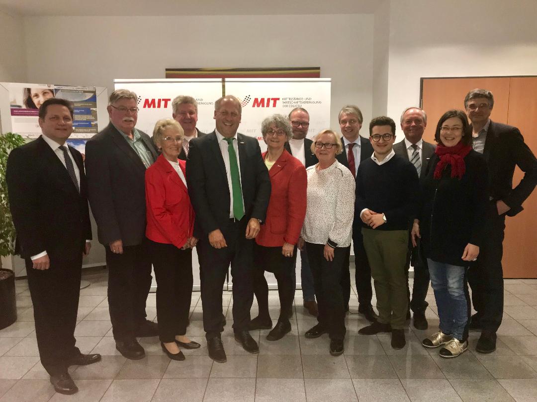 Der Bezirksverband der Mittelstands- und Wirtschaftsvereinigung (MIT) am Niederrhein hat sich neu aufgestellt. Die MIT setzt sich am Niederrhein für die Belange des Mittelstandes und der Wirtschaft ein. Bei der Delegiertenversammlung bei der Niederrhein Tourismus GmbH in Viersen wurde Maik Giesen aus dem Kreis Viersen im Amt des Bezirksvorsitzenden bestätigt. Als stellvertretende Vorsitzenden wurden Michel Darda (Kreis Wesel), Dr. Jens Hartmann (Rhein-Kreis-Neuss), Prof. Peter Vermeulen (Krefeld) und Dr. Frank Wackers (Kreis Kleve) gewählt. Als neuer Geschäftsführer fungiert der Kempener Tobias Robl. Zu Gast waren Stefan Rouenhoff MdB und Dr. Stefan Berger MdL, die beide von ihren Tätigkeiten in Bundestag und Landtag berichteten. Dr. Stefan Berger stellte auch seinen gestarteten Europawahlkampf am Niederrhein vor. Die Geschäftsführerin der Niederrhein Tourismus GmbH, Martina Baumgärtner, präsentierte den Mittelständern die neue Marke „Niederrhein. So gut. So weit.“ Sie stellte Events vor und erläuterte die Besonderheiten der Region