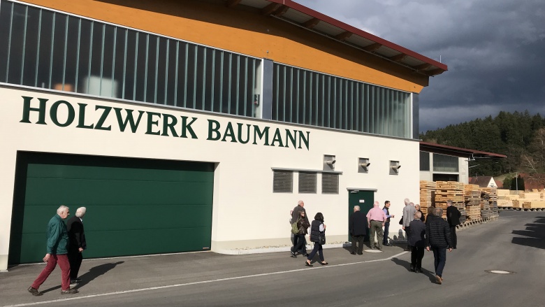Der Verein FOWIK (Forum für Wissenschaft und Kultur Meersburg e.V.) hatte eingeladen zu einer Besichtigung des Holzwerks Baumann in Wangen im Allgäu. Gerne haben die MIT Bodensee und die MIT Ravensburg die Einladung von FOWIK angenommen und so mit einigen Mitgliedern zum Besuchererfolg beigetragen. Herr Baumann selber (Unternehmer und Geschäftsführer der Holzwerke Baumann GmbH) empfing uns bei gutem Wetter und führte uns zunächst durch die weitläufige Außenanlage, auf der das teil- und fertigbearbeitete Holz gelagert wird. Die Dimensionen (ca. 100 000 qm Fläche) dieser Anlage beeindruckten die Besucher ordentlich. Immerhin gehört dieser Betrieb auch zu den ca. 60 großen Sägewerken in Deutschland; pro Jahr werden hier 110 000 Festmeter Holz (90% Fichte, 10% Kiefer) in Konstruktionsholz und Holz für die Verpackungsindustrie umgewandelt. Das rohe Holz (Stämme bis 21 m Länge) stammt aus der Umgebung (Umkreis von ca. 60 km), das bearbeitete Holz geht wiederum zur Verwendung bzw. Weiterverarbeitung in die Umgebung. Bei nachhaltigem Waldmanagement arbeitet somit in unserem Bereich ein Unternehmen, welches den nachwachsenden Rohstoff für vielfältige Anwendungen unter möglichst schonenden Bedingungen zur Verfügung stellt. Während der Führung konnten wir dann feststellen, welchen Aufwand das Unternehmen betreibt, um umweltschonend (z.B. durch Gebäudeüberbau sehr lauter Maschinen, durch umfassende Naturschutzmaßnahmen) und mit größtmöglicher Rücksicht auf das kleine Wohngebiet nebenan seine Arbeit zu verrichten. Computerunterstützt werden die angelieferten LKW-Ladungen (eine Ladung mit ca. 30 Stämmen von bis zu 21 m) in weniger als 13 Minuten entladen, in der Maschinenhalle vermessen und gekennzeichnet, vorbearbeitet (Entfernung von Wurzelanläufen) und optimiert auf geringstmöglichen Abfall in Abschnitte von ca. 3 bis 15 m je nach Auftrag geschnitten. Dies alles wird von einer Steuerwarte (siehe Bild 2) durch einen Mitarbeiter überwacht. Die nachfolgende Weiterverarbeitung erfolgt ebenfalls mit Computerunterstützung; die Stammabschnitte werden komplett vermessen und der beste Schnitt für Kanthölzer wird ermittelt und durchgeführt. Anschließend erfolgt je nach Auftrag die Weiterverarbeitung der Bretter oder Kanthölzer, wobei immer ein kompletter Auftrag in einem Zug die gesamte Bearbeitungskette durchläuft. Nach der Besichtigung berichtete Herr Baumann über die Schwierigkeiten, die sich durch die Komplettverlagerung des ehemaligen Hauptbetriebes von Langenargen in den Wangener Teilort Beutelsau ergaben. Angefangen vom Gewässerschutz (die Argen fließt direkt am Standort vorbei) über den Lärmschutz bis hin zum Brandschutz waren höchste Auflagen zu erfüllen. Insgesamt zog sich die Genehmigung in mehreren Abschnitten über mehr als 10 Jahre hin. Dies sollte für uns MIT-ler Anlass sein, die Dauer dieser Genehmigungsverfahren und die Auflagen mit unseren Mitgliedern zum wiederholten Male zu diskutieren; immer wieder erreichen uns Beschwerden, bei denen die betroffenen Unternehmen finanziell stark bis hin zur Insolvenz durch die Dauer des Genehmigungsverfahrens getroffen werden. In einem weiteren Vortrag legte der Brandschutzsach-verständige Dipl. Ing. Albeck dar, wie bei einem Betrieb mit so hohen Sachwerten eine Risikountersuchung stattfindet und welche immensen Anstrengungen vom Unternehmen getätigt werden müssen, um diesen zu genügen. Dabei wurde von den Zuhörern die Verhältnismäßigkeit von Risiko und Aufwand angesprochen, über die zur Zeit auch in der Politik diskutiert wird. Im Vergleich zu hauptsächlich Sachwerten zeigte Herr Albeck am Beispiel des Museums Humpis-Quartier in Ravensburg, bei dem er brandtechnisch mitwirkte, welche Prämissen in den Brandschutz einfließen, wenn es sich hauptsächlich um Personenschutz handelt. Die gut besuchte Veranstaltung gab den Besuchern einen tiefen Einblick in ein modernes Sägewerk. Mit den anschließenden beiden Vorträgen wurden die administrativen und letztlich politisch gegebenen Vorgaben beleuchtet, mit denen ein Betrieb heute konfrontiert wird und denen er genügen muss. Beide Vorträge werden sicherlich Inhalt nachfolgender Diskussion bei FOWIK und bei den beiden Kreisvereinen der MIT Bodensee und Ravensburg sein. Die MIT bedankt sich herzlich bei dem Holzwerk Baumann, bei den Herren Baumann und Albeck für die tolle Führung und die informativen Vorträge sowie insbesondere bei FOWIK dafür, dass wir mit eingeladen waren und teilnehmen durften.