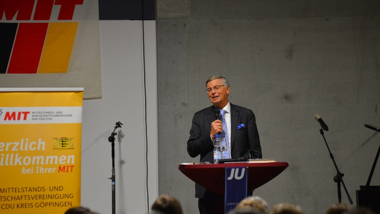 In Ulm gelandet, musste der Hauptredner beim Politischen Herbstfest von MIT und JU der CDU bei der Firma Lambert mit dem Auto nach Göppingen gefahren werden. Kurzerhand stellte MIT-Kreisvorsitzender Eduard Freiheit das Programm um und die zahlreichen Besucher und Ehrengäste nahmen es nach der gemeinsamen Begrüßung durch JU-Kreisvorsitzenden Simon Weißenfels und MIT-Vorsitzenden Eduard Freiheit locker. Als Bosbach eintraf, wurde er frenetisch von 280 Gästen begrüßt. Bei seinem Vortrag „Wie ist unser Kompass für die Zukunft Deutschlands?“ streifte er eine Fülle von politischen Themen: Außenpolitik, Innenpolitik, Wirtschaft, die Bedeutung Europas für Frieden und Freiheit und der Wandel von der Industriegesellschaft zur Wissensgesellschaft.