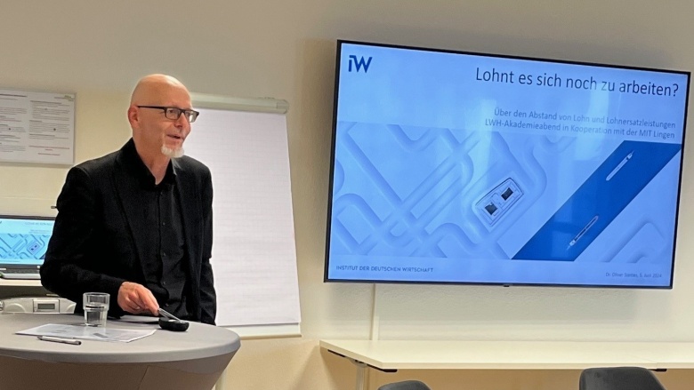 Das wurde schon deutlich, als Dr. Oliver Stettes vom Institut der deutschen Wirtschaft gleich zu Beginn seiner Keynote darauf verwies, was von ihm nicht zu erwarten sei: Die Frage der Lohnhöhe sei getrennt von der Frage der Höhe der Lohnersatzleistungen zu diskutieren. Das liege daran, dass sich die Höhe des Lohnes an ganz anderen Kriterien orientiere, als die Höhe der Lohnersatzleistungen. "Ein leistungs- und wertschöpfungsorientierter Lohn, dessen Höhe am Arbeitsmarkt gefunden und vereinbart wird, der ist
