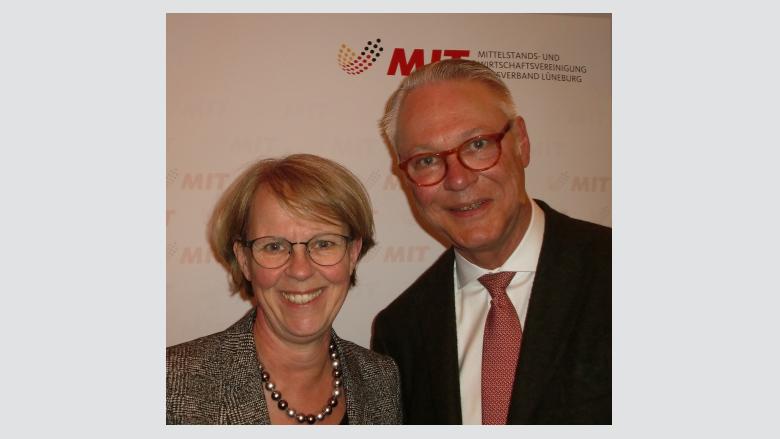 Für die verhinderte Schatzmeisterin Carmen Hansen lieferte Christian Köpcke dazu solide Zahlen. Luths und Hansen wurden ebenso einstimmig in ihrem Amt bestätigt wie die stellvertretenden Vorsitzenden Volker Bergmann und erstmals der bisherige Beisitzer Patrick Pietruck sowie Max Manzke als Schriftführer im geschäftsführenden Vorstand. Die Beisitzer Tanja Grimberg, Dr. Stefan Porwol, Dr. Christopher Scharnhop, Monika Scherf, der bisherige stellvertretene Vorsitzende Joachim Schlarmann und Kersten von Borgstede gehören dem erweiterten Vorstand an. Christian Köpcke und Lars Volkmann werden auch weiterhin die Bücher prüfen. Ein moderater Mitgliederzuwachs bleibt angestrebt, wobei insbesondere der Anteil der Unternehmerinnen verstärkt und junge Mittelständler angesprochen werden sollen. Monika Scherf wurde als besonderer Gast der MIT Lüneburg vom Vorsitzendem Peter Luths begrüßt. Lebhaft ging es zu bei den anschließenden 31. „Gesprächen MIT Genuss“. Etwa 40 Mitglieder und geladene Gäste erfreuten sich an einem genussvollen Menü und passenden Getränken. Die Leiterin des Amtes für regionale Landesentwicklung und Landesbeauftragte der niedersächsischen Landesregierung, Frau Monika Scherf (Lüneburg), berichtete als besonderer Gast von den Aufgaben als Scharnier zwischen den Bedürfnissen der Region und den Anforderungen der Landesregierung. Dabei kommt ihr ihre langjährige und breite Verwaltungserfahrung zugute. Insbesondere als Dezernentin für Landesentwicklung und Raumordnung – u.a. zuständig für die Raumordnungsverfahren und die Beratung von Planungsträgern – für die seinerzeitige Bezirksregierung Lüneburg und mit dem dortigen Aufbau des Europa-Büros mit intensiver Beschäftigung mit der Europäischen Regionalpolitik und der Akquisition von EU-Fördermitteln für die Region blickt sie auf wertvolle Erfahrungen zurück. Als Herausforderung stelle sich immer wieder dar, die Förderbedarfe auf die oftmals mit speziellen Anforderungen versehenen Fördermitteln aus Brüssel, Berlin oder Hannover abzustimmen, um für Nordostniedersachsen – eine Fläche vergleichbar mit der Schleswig-Holsteins mit elf Landkreisen und knapp zwei Millionen Einwohnern – Gutes bewirken zu können. Mit anschaulichen Beispielen garniert bot sie zahlreiche Anknüpfungspunkte für langanhaltende und lebhafte „Gespräche MIT Genuss“. Für die 32. Auflage konnte für den 02.05.2019 Jens Böther gewonnen werden, der sich und seine Ideen präsentieren wird, um am 26. Mai 2019 zum Landrat des Landkreises Lüneburg gewählt zu werden. (Foto: MIT/Max Manzke)