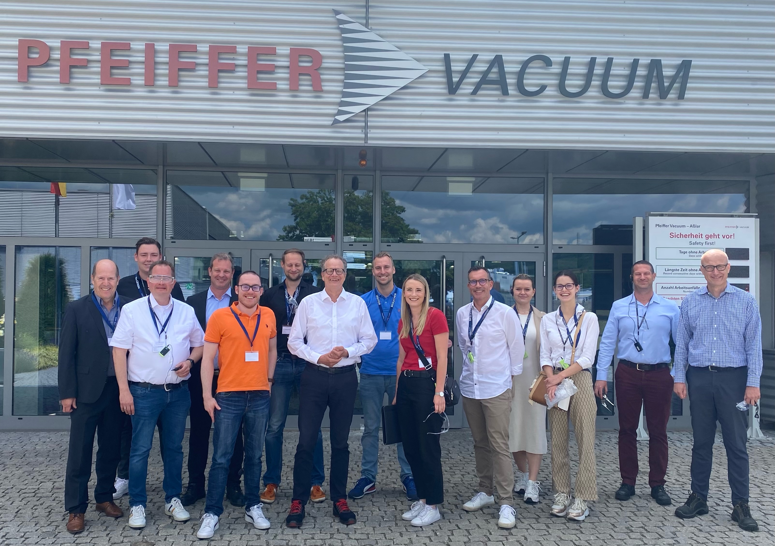 In einer interessanten Führung durch das Unternehmen bekamen alle Teilnehmer einen Einblick in Erzeugung und Herstellung von Vakuumtechnologie. Pfeiffer Vacuum ist ein weltweit führender Anbieter von Vakuumlösungen. Seit Erfindung der Turbopumpe durch Pfeiffer Vacuum steht das Unternehmen für innovative Lösungen und Hightech-Produkte in den Märkten Analytik, Industrie, Forschung & Entwicklung sowie Halbleiter und Zukunftstechnologien. Gegründet 1890, ist Pfeiffer Vacuum heute weltweit aktiv. Das Unternehmen beschäftigt etwa 4.000 Mitarbeiter und hat über 20 Vertriebs- und Servicegesellschaften sowie 10 Produktionsstandorte weltweit.
