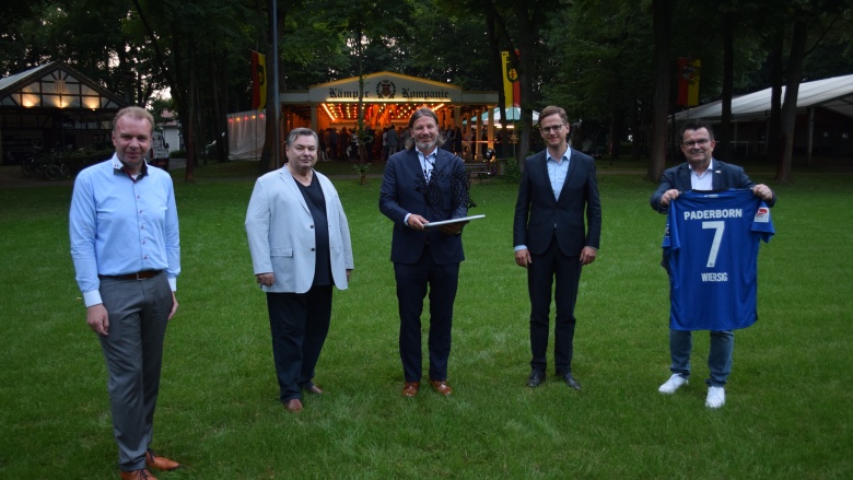 Die Mittelstands- und Wirtschaftsunion (MIT) im Kreis Paderborn hat es bei ihrem traditionellen Libori Warm-up „Libori, Politik, Ehrung, Dialog - Vorfreude auf das Fest des Heiligen Liborius“ geschafft, ein großes Themenpaket unter einen Hut zu bringen. Die Veranstaltung fand nicht, wie sonst üblich, in Auffenbergs Biergarten auf dem Liboriberg, sondern in der Baude der Kämper-Kompanie auf dem Paderborner Schützenplatz statt.