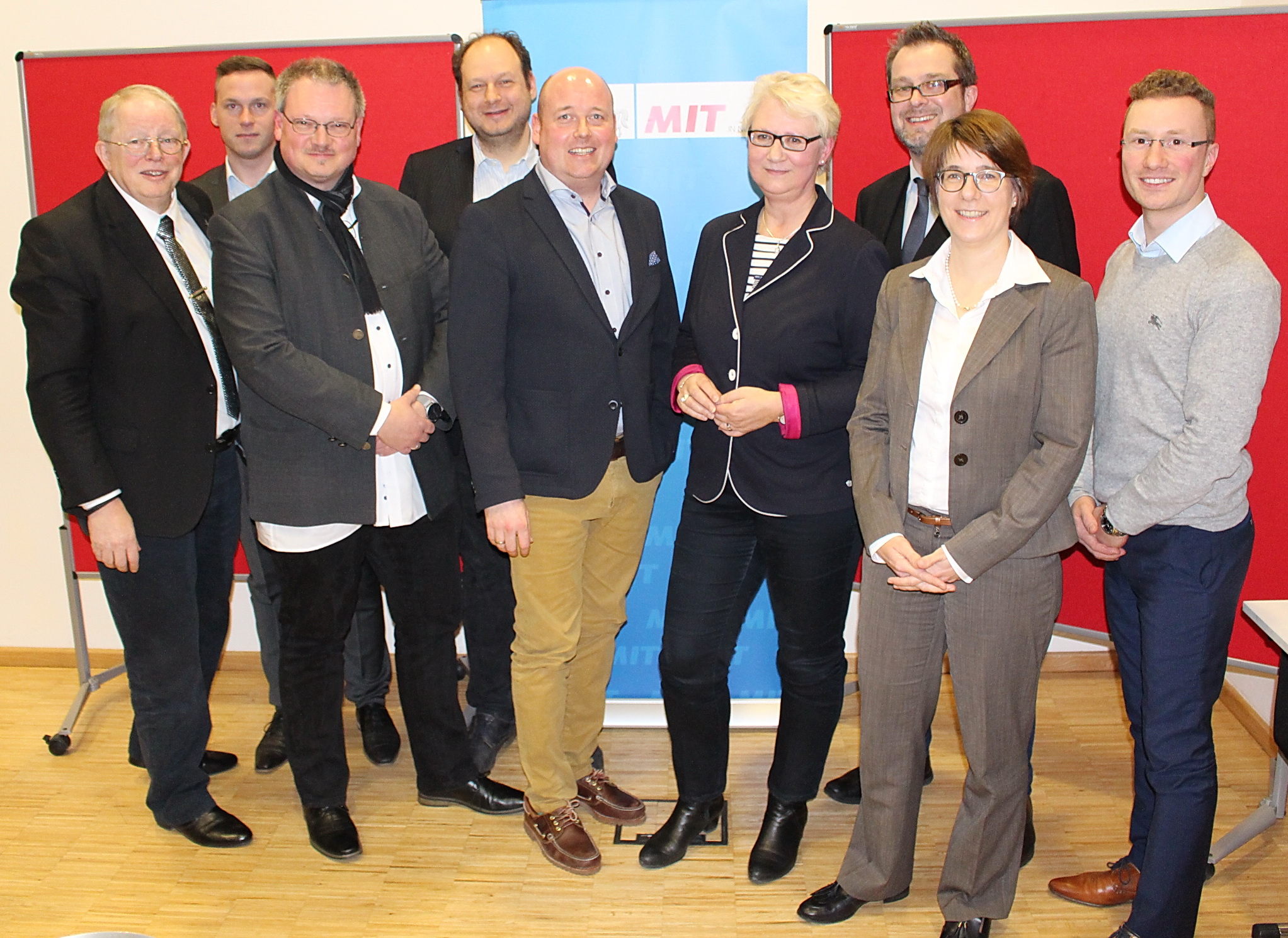 Der Landesverband der MIT-Braunschweig ist der übergeordnete Gebietsverband der MIT-Kreisverbände Braunschweig, Goslar, Helmstedt, Peine, Salzgitter und Wolfenbüttel. Er vertritt nahezu 500 Mittelständler und weitere wirtschaftspolitisch Interessierte. Der jetzige Landesvorstand besteht neben der Vorsitzenden aus Holger Bormann (Wolfenbüttel), Deniz Demirci (Braunschweig) und Tim Faustmann als stellvertretenden Vorsitzenden. Jan-Tobias Hackenberg wurde zum Landespressesprecher gewählt. Jens Peter Drube und Timo Dutko (beide Braunschweig) komplettieren als Beisitzer den Vorstand. Der Landesmittelstandstag nominierte Holger Bormann für eine Kandidatur zum stellvertretenden MIT-Landesvorsitz der Niedersachsen-MIT und Deniz Demirci für eine erneute Kandidatur in den erweiterten niedersächsischen Landesvorstand. Sabine Kleinke soll erstmals für den Bundesvorstand der MIT Deutschlands kandidieren. Die Wahlen und Nominierungen leitete der Hauptgeschäftsführer der Niedersachsen-MIT, Andreas Sobotta aus Hannover. Die MIT im Landesverband Braunschweig hat sich zum Ziel gesetzt, sich intensiv für die Belange der kleinen und mittleren Unternehmen einzusetzen. In den kommenden zwei Jahren will sich der Landesvorstand intensiv um die Stärkung der Kreisgliederungen in Helmstedt, Goslar und Salzgitter kümmern. Foto: Tilo Geipel, Wolfenbüttel Foto - (v.l.n.r.): Andreas Sobotta, Timo Dutko, Jens-Peter Drube, Jan-Tobias Hackenberg, Holger Bormann, Sabine Kleinke, Tim Faustmann, Antoinette von Gronefeld und Deniz Demirci.