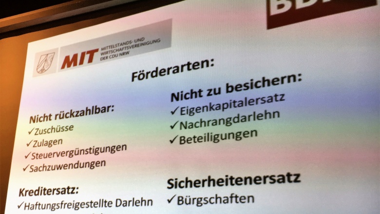 Kreisvorsitzende Doro Dietsch hatte mit Ulrich Brinkmann einen beeindruckenden Referenten gefunden, der in seinem Vortrag unter anderem erläuterte, wofür es Fördermittel gibt: Zum Erschließen neuer Wirtschaftsfelder, als Anreize zur Anpassung an neue Gesellschaftsform oder zur Erhaltung schützenswerter Strukturen. Aber es gibt auch Haftungsbefreiungen (zum Beispiel für Startups), Regionen-Förderung (eher in Sachsen als in NRW), Hilfen für die Entwicklung eines neuen Projektes (durch Übernahme von Forschungs- und Entwicklungskosten), Nettogeldoptimierung für Mitarbeiter, Gründungszuschüsse, Lohnkostenzuschüsse, Projektzuschüsse, Eigenkapitalersatz, Förderdarlehen mit Haftungsbefreiung, Nachrangdarlehen, Ersatzsicherheiten, Eigenkapitalhilfeprogramme, Risikoanalysen, Bildungsschecks, Turnaround-Hilfen und vieles, vieles mehr. Fazit: Wer innovationsfähig ist, wird vielfältig unterstützt! Man sollte allerdings nicht hoffen, durch Fördermittel innovationsfähig zu werden.
