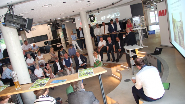 Zu Gast war diesmal Meinungsforscher Hermann Binkert, Geschäftsführer des Instituts „INSA Consulere“. Der Besucher aus Erfurt fand sich in einem modernen Start-Up-Inkubator wieder, den Prof. Dr. Rüdiger Kabst, Vizepräsident der Universität, den rund 100 Gästen vorstellte. Seit rund vier Wochen hat die Garage mitten im Technologiepark geöffnet und schon sind die gut 40 Plätze zum Arbeiten, Vernetzen, Coachen und kreativen Nachdenken extrem nachgefragt, wie der MIT-Kreisvorsitzende Ulrich Lange in seiner Begrüßung hervorhob. „Wir bieten hier Freiraum für Gründer“, erläuterte der Macher und Ideengeber der „garage33“, Prof. Dr. Rüdiger Kabst, „Menschen, die den Mut haben, unternehmerisch tätig zu werden, unterstützen und beraten wir - und wir können auch Geld für sie besorgen.“ Doch nicht nur Start-Ups finden in den innovativen Räumlichkeiten des ostwestfälischen Silicon Valley kundige Helfer. „Wir fördern auch Unternehmen, die im Erfolg gemütlich geworden sind. Bei uns können neue Ideen entstehen, die so im Unternehmen nie geboren würden.“ Die Seminare sind bereits jetzt bis in den Herbst ausgebucht.