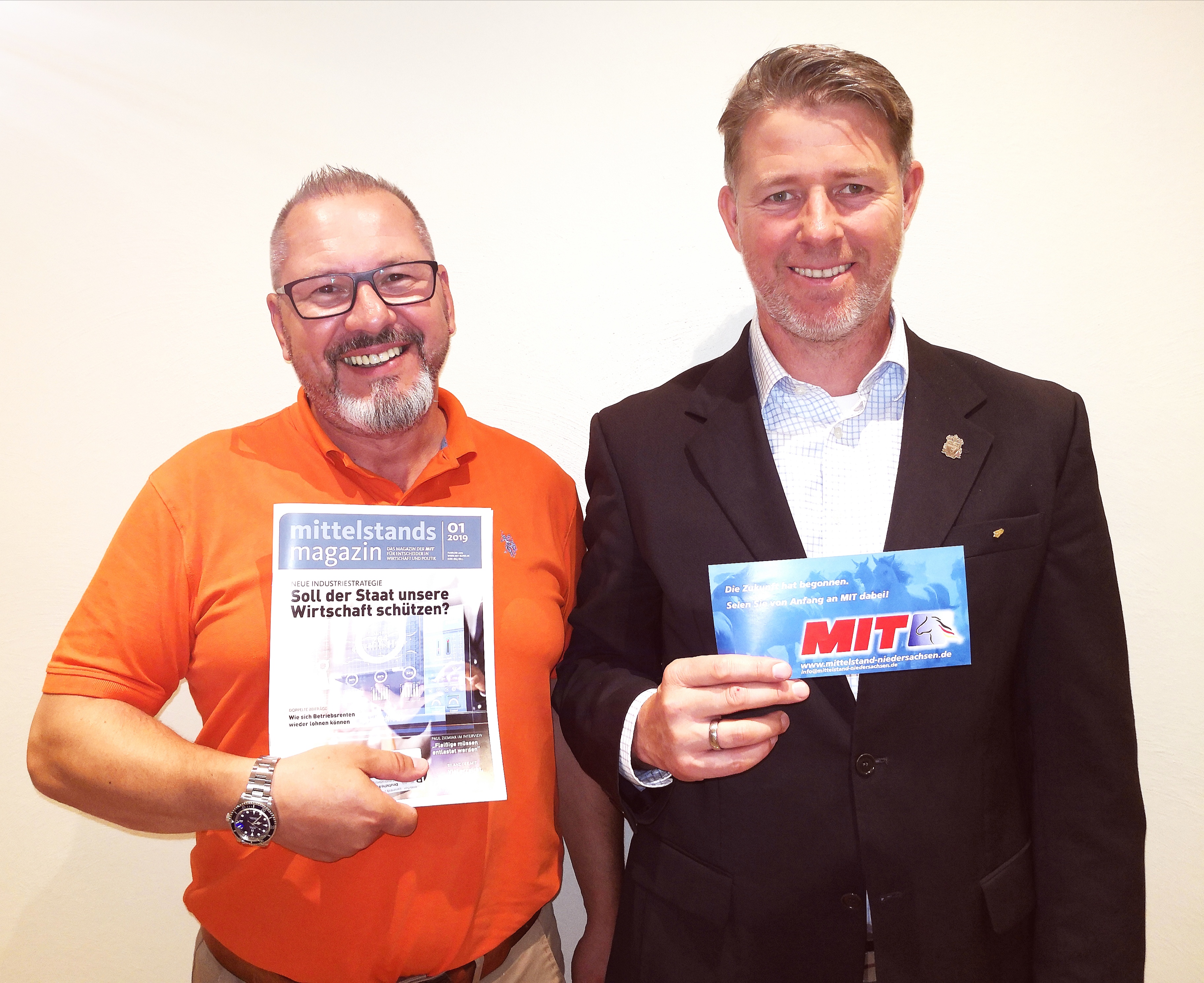 Vorsitzender ist Anthony-Robert Lee. Stellvertreter ist Thomas Weishaupt. Zum Schriftführer wurde Thomas Gieselmann gewählt. Mitglieder der MIT sind Unternehmer, Kaufleute, Handwerker, Freiberufler, leitende Angestellte, Landwirte und wirtschaftspolitisch interessierte Personen. Es handelt sich um einen Personenkreis, der oft zu wenig Zeit für eine politische Betätigung hat und deshalb eine wirkungsvolle politische Interessenvertretung braucht. Foto: MIT Rinteln (v.l.n.r.): Thomas Weishaupt und Anthony-Robert Lee