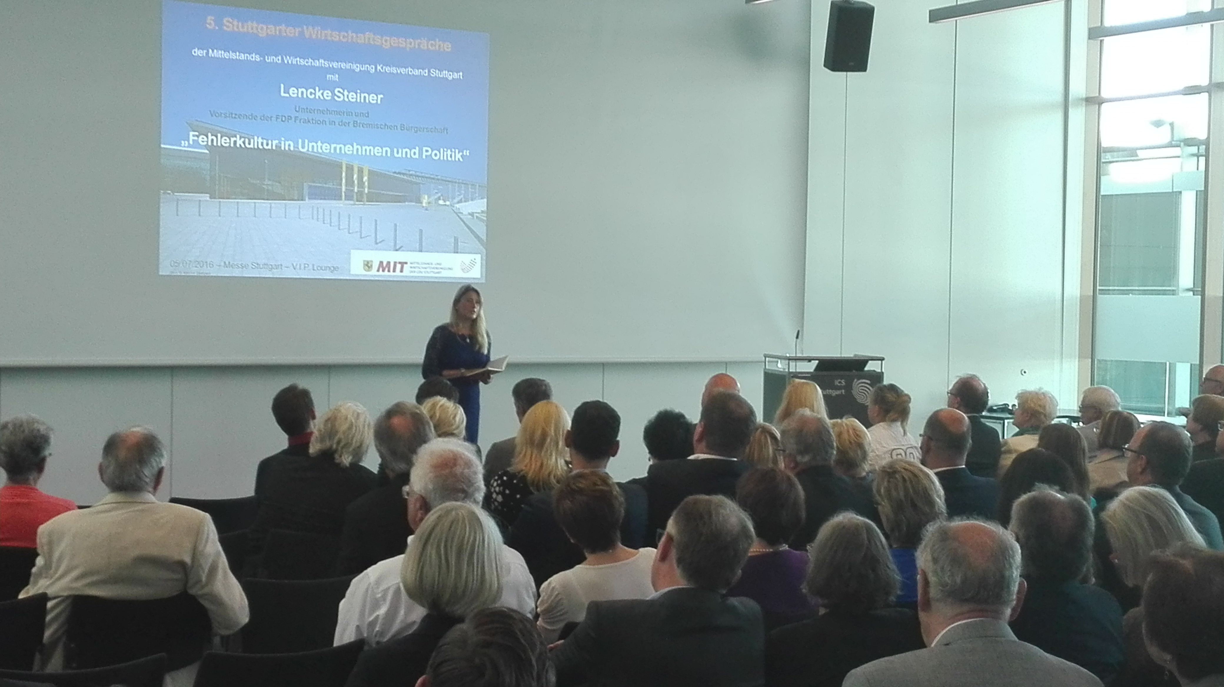 Dieses Jahr erläuterte Lencke Steiner die deutsche Einstellung zu Fehlern. Die junge Unternehmerin, Spitzenpolitikerin der FDP in der Bremischen Bürgerschaft und Investorin bei dem Fernsehformat „Die Höhle der Löwen“ zeigte locker, engagiert und sehr unterhaltend auf, wie der Hang zu Perfektionismus in Deutschland eine positive Fehlerkultur verhindert. Der Umgang mit Fehlern unterscheidet uns dramatisch von den USA. Dort wird mit Stolz erzählt, wie man über steinige Wege mit vielen Fehlern letztlich doch noch zum Erfolg gelangte. In Deutschland wird bei Erfolg der Weg dorthin nur durch die rosarote Brille geschildert. Wir schämen uns, Fehler einzugestehen, da man bei einem solchen Eingeständnis schräg angeschaut wird. Wir haben Angst vor Fehlern und diese Angst lähmt die deutsche Wirtschaft. In Deutschland wurden 2015 im Vergleich zum Vorjahr 2 % weniger Firmen gegründet. Hierfür gibt es verschiedene Gründe. Einer davon ist, dass ein Einstiegsgehalt nach dem Studium höher ist, als das Einkommen eines start-up-Unternehmers, das zudem verbunden ist mit Risiken. Es gilt die Angst, keinen Erfolg zu haben, dem daraus resultierenden Gesichtsverlust und dem folgenden Imageverlust. Insolvenz anzumelden, gehört sich nicht. Eine zweite Chance durch die Banken gibt es nicht. Respekt vor Gründern sucht man vergeblich. Hat der Vater Mist gebaut, werden durch die Namensgleichheit die Söhne in Sippenhaft genommen. Steiner schilderte anschaulich den Umgang mit Fehlern an Beispielen, u.a. von paypal, das der vierte, diesmal erfolgreiche Versuch einer Unternehmensgründung ist oder dem zweiten Versuch von Lars Hinrich, der zum bekannten Netzwerk Xing führte. Sie erzählte auch von vielen eigenen Entscheidungsfehlern, die teilweise sehr viel Geld gekostet haben: „ jeder Stein, der mir in den Weg gerollt wurde, war ein Meilenstein in meiner Entwicklung. Man darf nicht verzweifeln bei Problemen, auch wenn man feststellt, dass das jetzt wieder mal richtig Sch…. gelaufen ist.“ Niemand ist frei von Fehlern. Als Chef sollte man mit seinen eigenen Fehlern offen umgehen. Steiner berichtete von der positiv gelebten Fehlerkultur im eigenen Unternehmen und dem Umgang mit Mitarbeitern, denen Fehler unterlaufen sind. Zur positiven Fehlerkultur gehört auch Verzeihung. Dies gilt nicht nur in Unternehmen sondern auch für die Politik. Aber auch hier fehlt der Mut zu Fehlern oder deren Eingeständnis. Passieren Fehler, sind immer die anderen schuld - oder niemand ! Dabei bieten Fehler auch Chancen. Auch stellt sich die Frage, was sind Fehler überhaupt? Etwas falsch zu machen, ist nicht immer ein Fehler. Es war wie immer ein