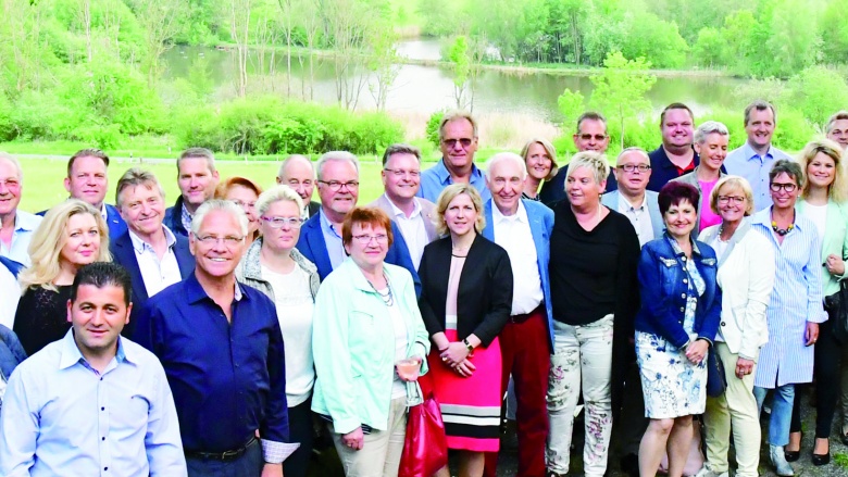 Rund 60 Mitglieder der Mittelstandsvereinigung (MIT) Wolfenbüttel trafen sich zum traditionellen Spargelessen in der Gaststätte „Reitling am Elm“. MIT-Vorsitzender Holger Bormann und Gastgeber Frerk Hennicke (Gaststätte „Reitling am Elm“) begrüßten die rund 60 Mitglieder. Die beiden Gastredner des Abends Frank Oesterhelweg und Uwe Dorendorf richteten emotionale und klare Worte an die Anwesenden. Sie gingen dabei auf die Lage und die bevorstehende Wahl in Europa, den Brexit, die Einwanderungspolitik und den zunehmenden Rechtspopulismus ein – 20 bis 24 Prozent sprechen dabei ein klare Sprache. Im Anschluß überreichte Holger Bormann ein bekanntes Präsent aus Wolfenbüttel an den Dannenberger Uwe Dorendorf. Er ist Mitglied des Niedersäsischen Landtages. Nach einem Vorspeisenteller wurde Spargel vom SpargelGUT aus Uehrde, Hachumer Kartoffeln, Schinken und Schnitzel sowie Sauce Hollandaise und Butter gereicht. Bei traumhafter Aussicht ließ man es sich munden. Vor dem Dessert war genug Zeit für nette Gespräche in gemütlicher Runde. Als Menüabschluß gab es dann Vanilleeis mit frischen regionalen Erdbeeren. Es war eine gelungene Veranstaltung. hs/Fotos: H. Seipold