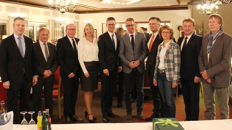 (v.l.): Dirk Wesjohann, Antonius Mönnig, Sven Oesten, Maria Freese, Dr. Carsten Linnemann MdB, Tobias Schulz, Sascha Kotschofsky, Birgit Nordmann, Bürgermeister Gerd Meyer und Dr. Heinz Gerdes