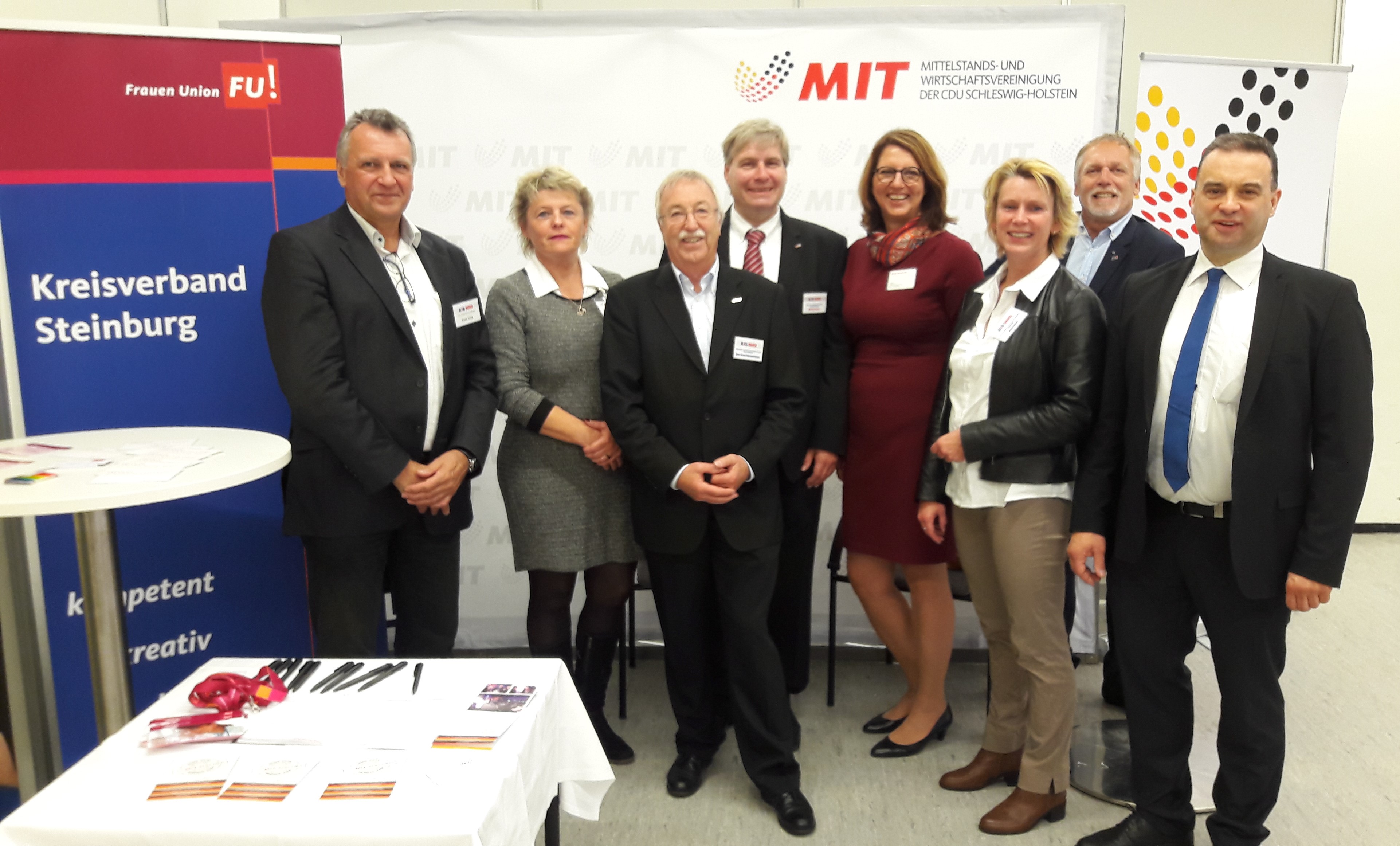 Man trifft sich, tauscht Ideen aus, bespricht gemeinsame Ziele, erweckt Synergien, findet neue Kontakte, entdeckt neue Unternehmens- und Verbandsziele: Die B2B-Nord am 23.10.18 in den Messehallen in Hamburg-Schnelsen bietet an einem Tag eine Kontakt- und Ideenbörse vor allem für kleine und mittelständische Unternehmen aus Hamburg und dem Umland und die Mittelstands- und Wirtschaftsvereinigung (MIT) ist dabei. Der Bad Bramstedter Regenta Verlag hat diese Business-Messe erfolgreich zur Tradition geführt, sein Inhaber Sven Boysen setzt sich auch als MIT-Kreisvorsitzender des Kreises Segeberg für mittelständische Interessen ein. Die vielfältigen Gespräche auf dem Stand sowie die Besuche bei anderen Unternehmen drehen sich nicht nur um betriebswirtschaftliche Belange, sondern vor allem um Unternehmenskultur und Wirtschaftspolitik. Und da ist die MIT mit ihrem Netzwerk zur Landes- und Bundespolitik gut positioniert und aufgestellt. Michael Stenzel, Landesvorstandsmitglied in Schleswig-Holstein und Kreisvorstandsmitglied im Kreis Segeberg hat als „Stand-Manager“ eine perfekte Vorbereitung getroffen und einen Treffpunkt für Unternehmen und Verbände mit MIT- und CDU-Repräsentanten geschaffen. Für den Kreis Steinburg war gleich doppelte Frauenpower bei der Wirtschaftsmesse vor Ort: Simona Gleich in ihrer Funktion als MIT-und FU-Kreisvorsitzende als auch Marita Schwenck. Als Vorstandsmitglieder beider Vereinigungen setzen sie sich nicht nur beruflich sondern auch auf politischer Ebene für die wirtschaftspolitischen Ziele unserer Gesellschaft ein. Das bestehende Netzwerk der Mittelstands- und Wirtschaftsvereinigung (MIT) als auch der Frauen Union (FU) konnte um weitere interessante Kontakte erweitert werden; so auch weit über die Landesgrenzen von Schleswig-Holstein hinaus.